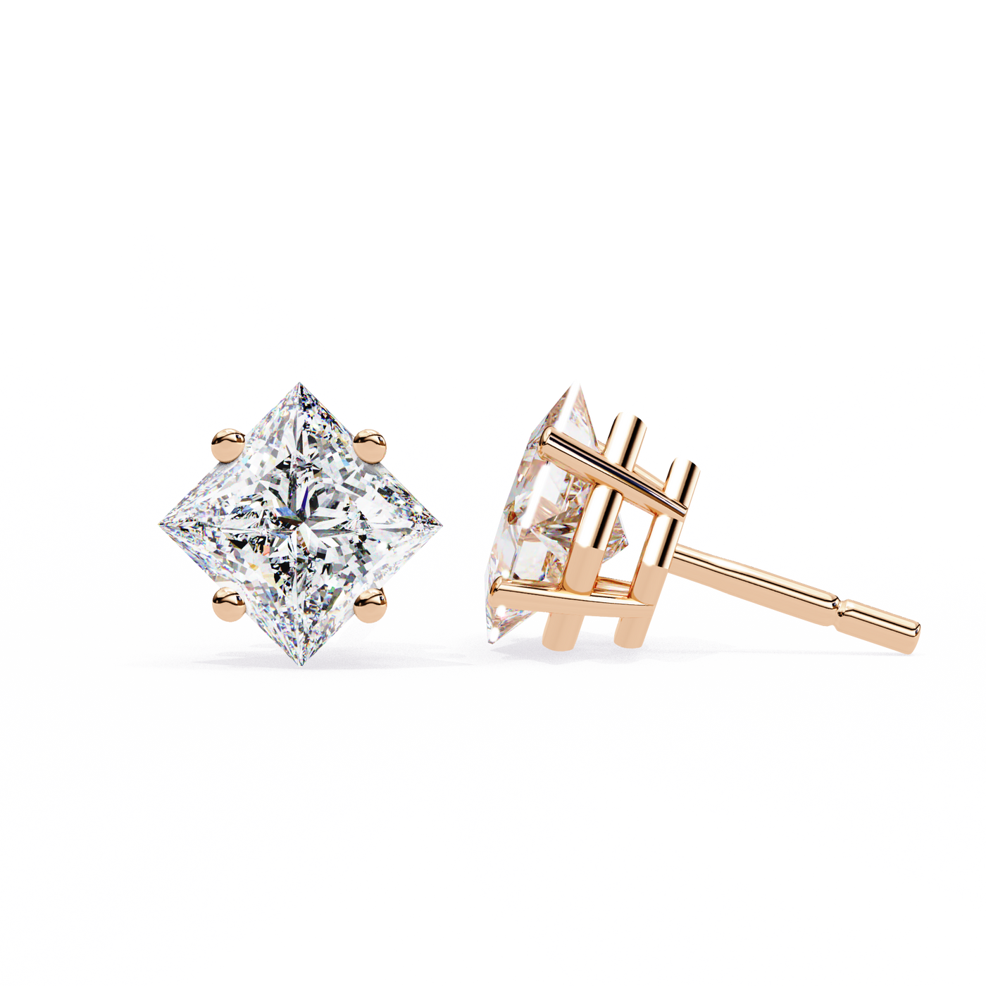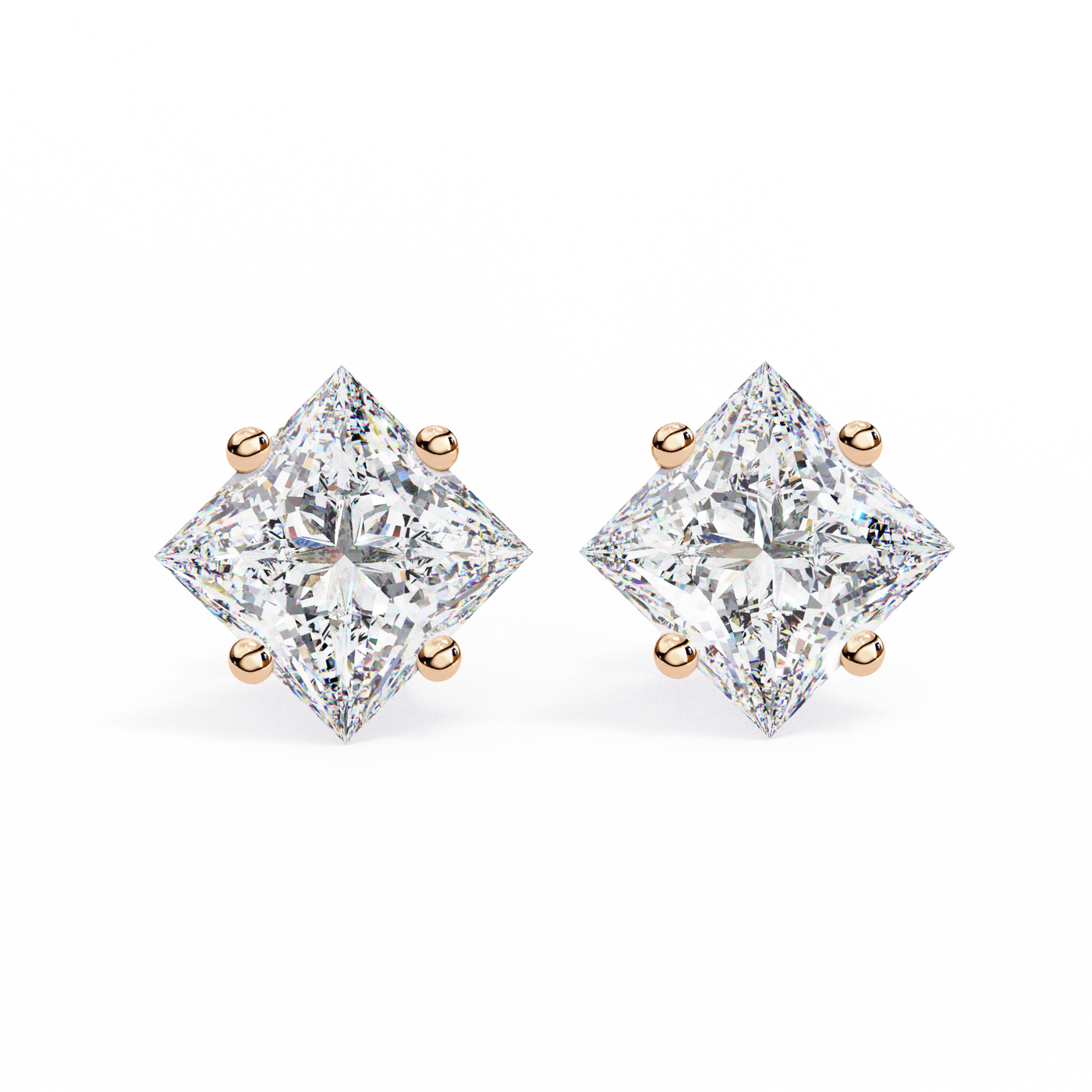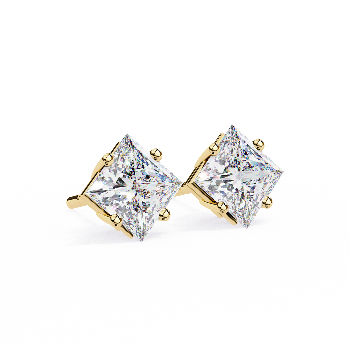 Classic Princess 2.39ct F Color VS2 Clarity Lab-Grown Diamond Stud Earrings - 14KT Gold / Yellow Gold