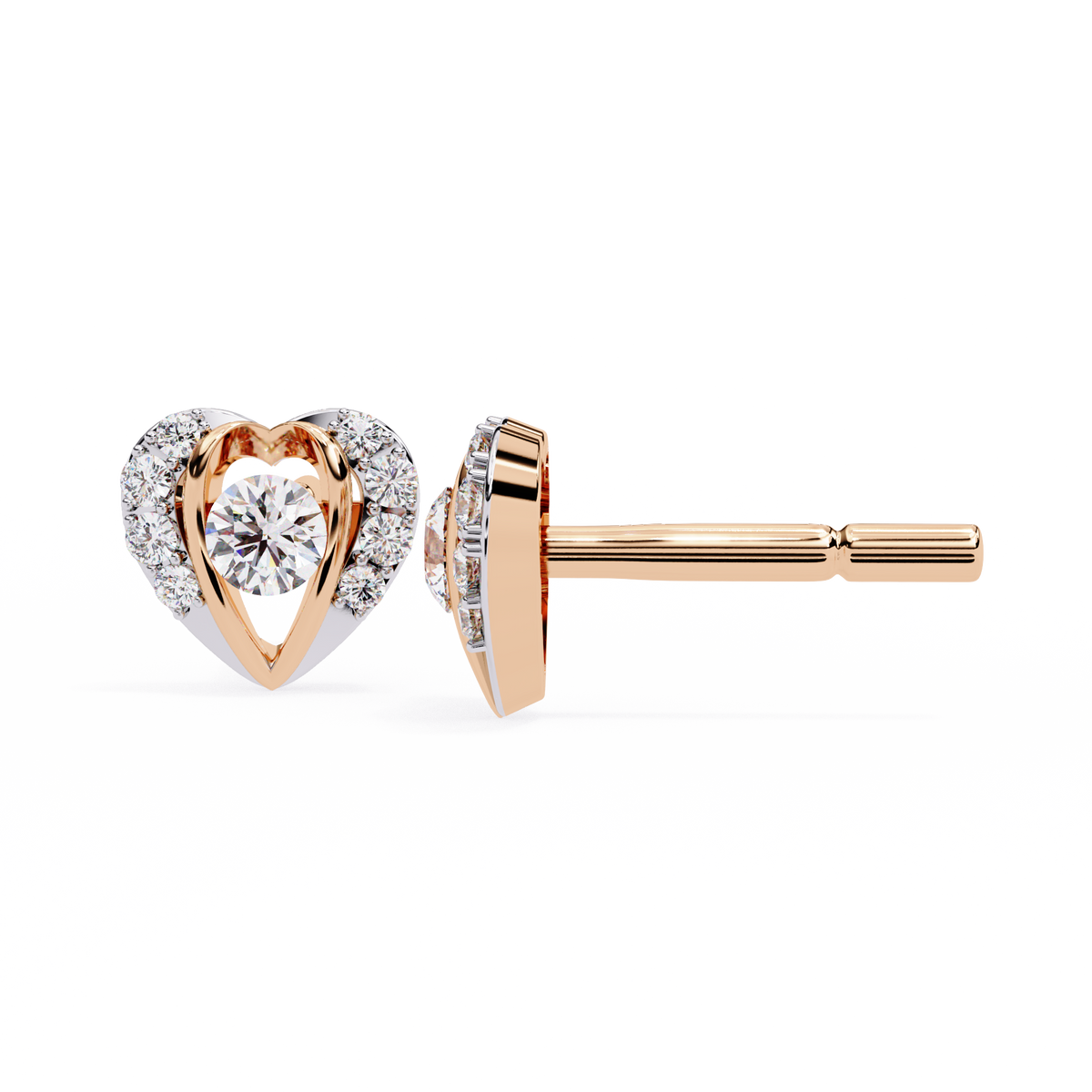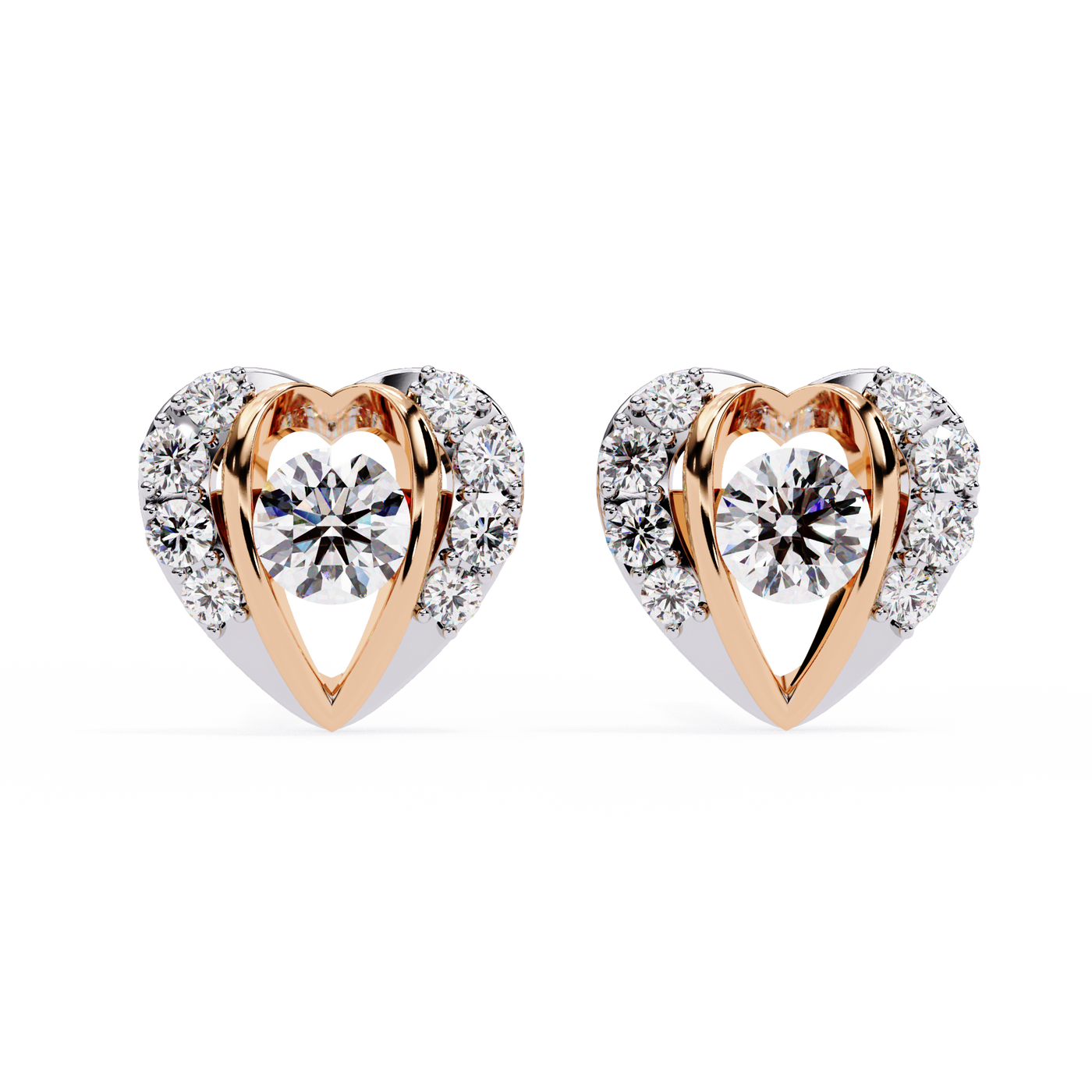 0.74ct Heart Motif Lab Grown Diamond Earrings – EF Color VS Clarity - 14KT Gold / Yellow Gold