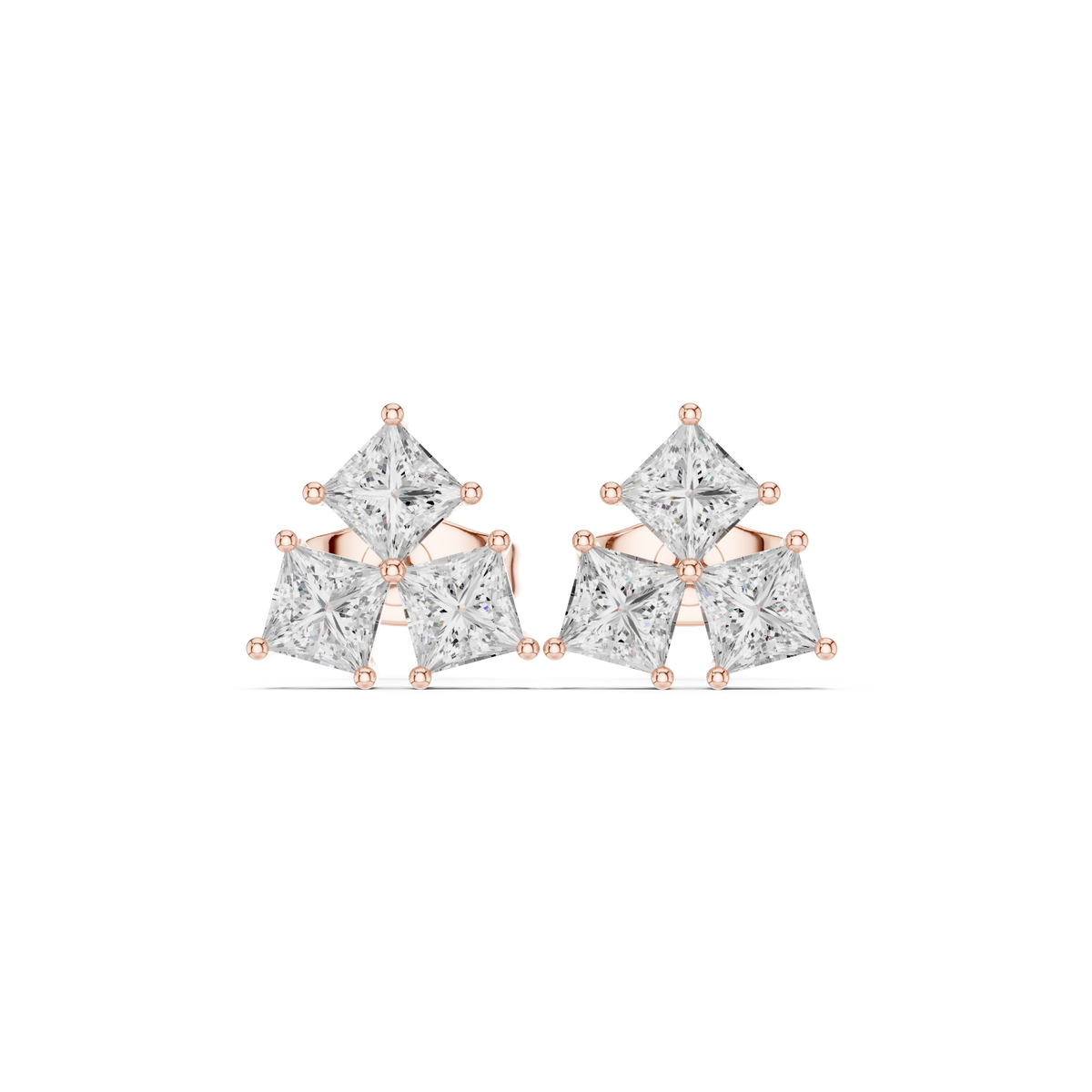 0.82ct Natural Diamond Cluster Studs – GH Color, VS Clarity, Princess Cut - 14KT Gold / Yellow Gold