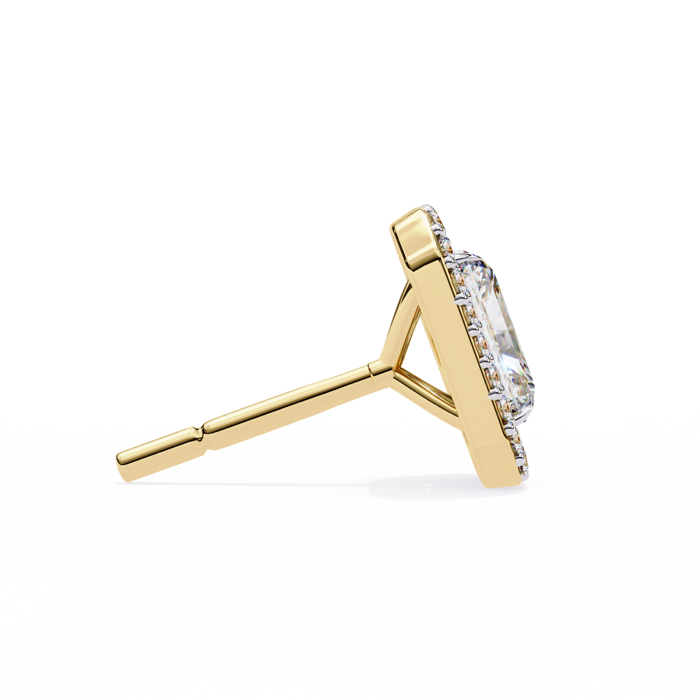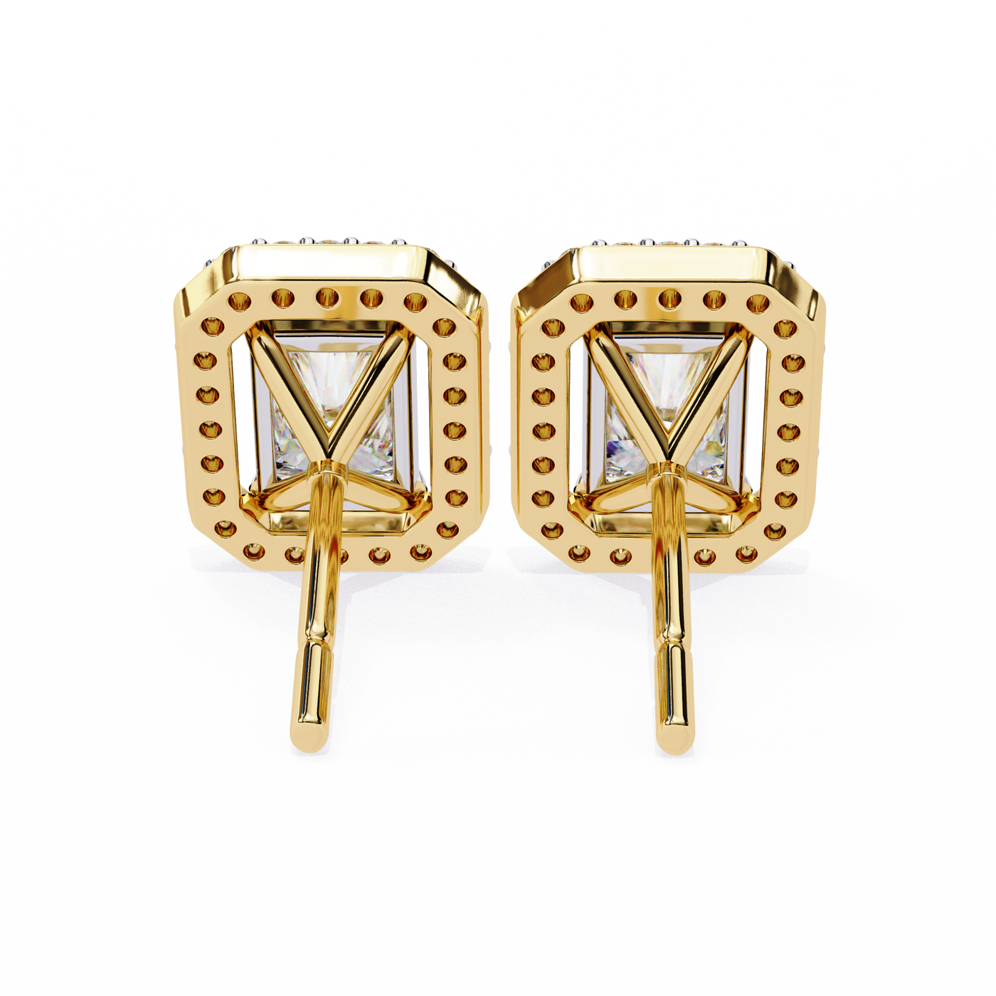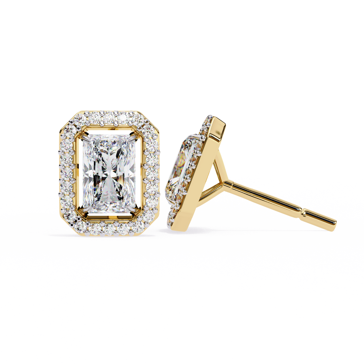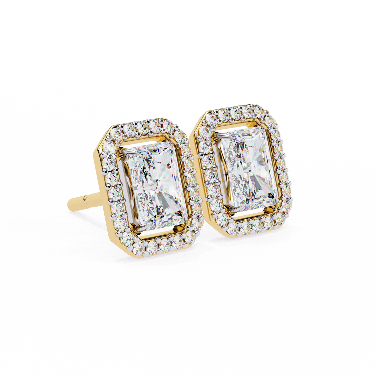 1.9 Carat Radiant Shape EF Color VS Clarity Double Halo Lab Diamond Studs - 14KT Gold / Yellow Gold