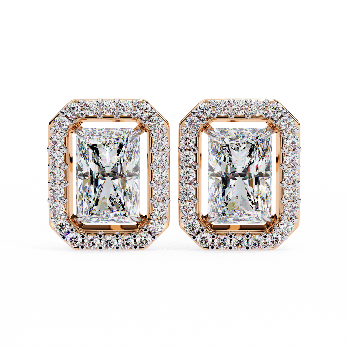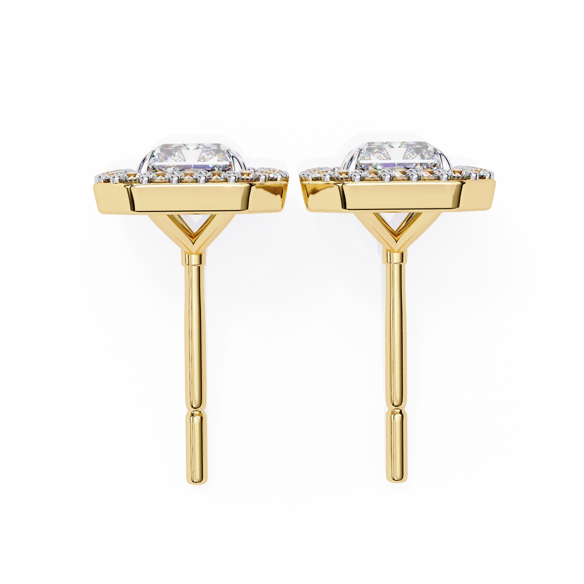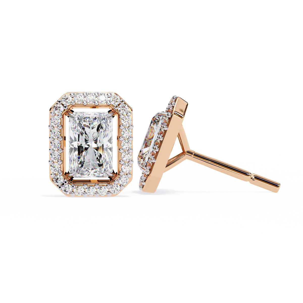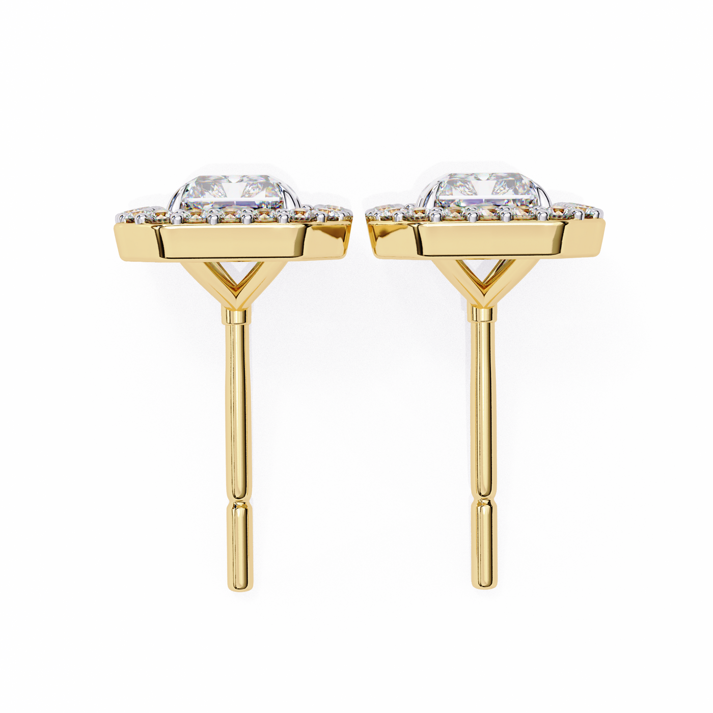 1.9 Carat Radiant Shape EF Color VS Clarity Double Halo Lab Diamond Studs - 14KT Gold / Yellow Gold