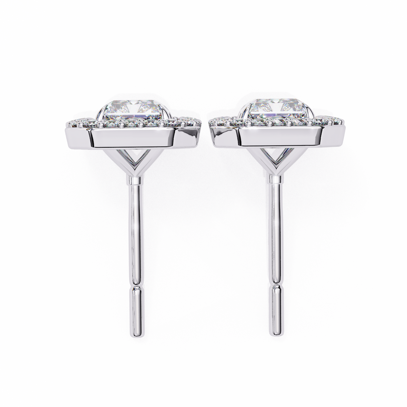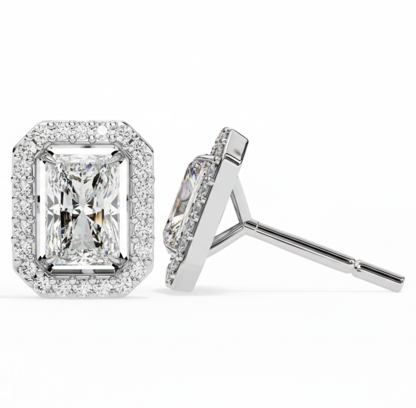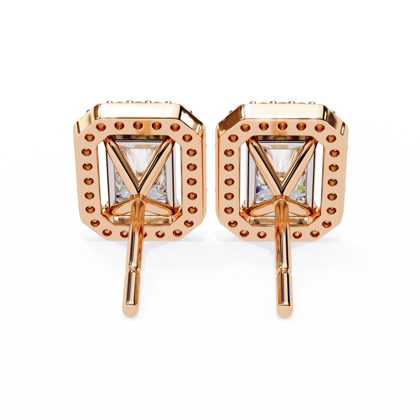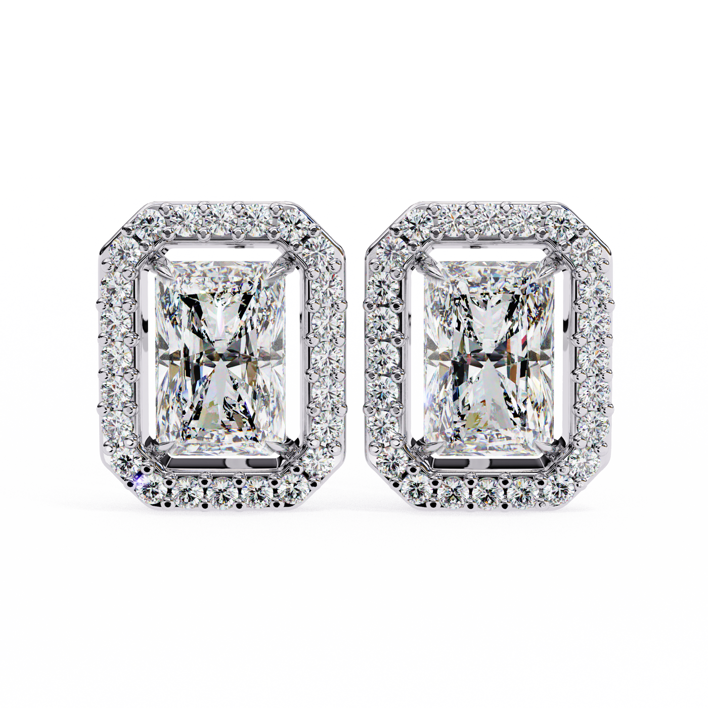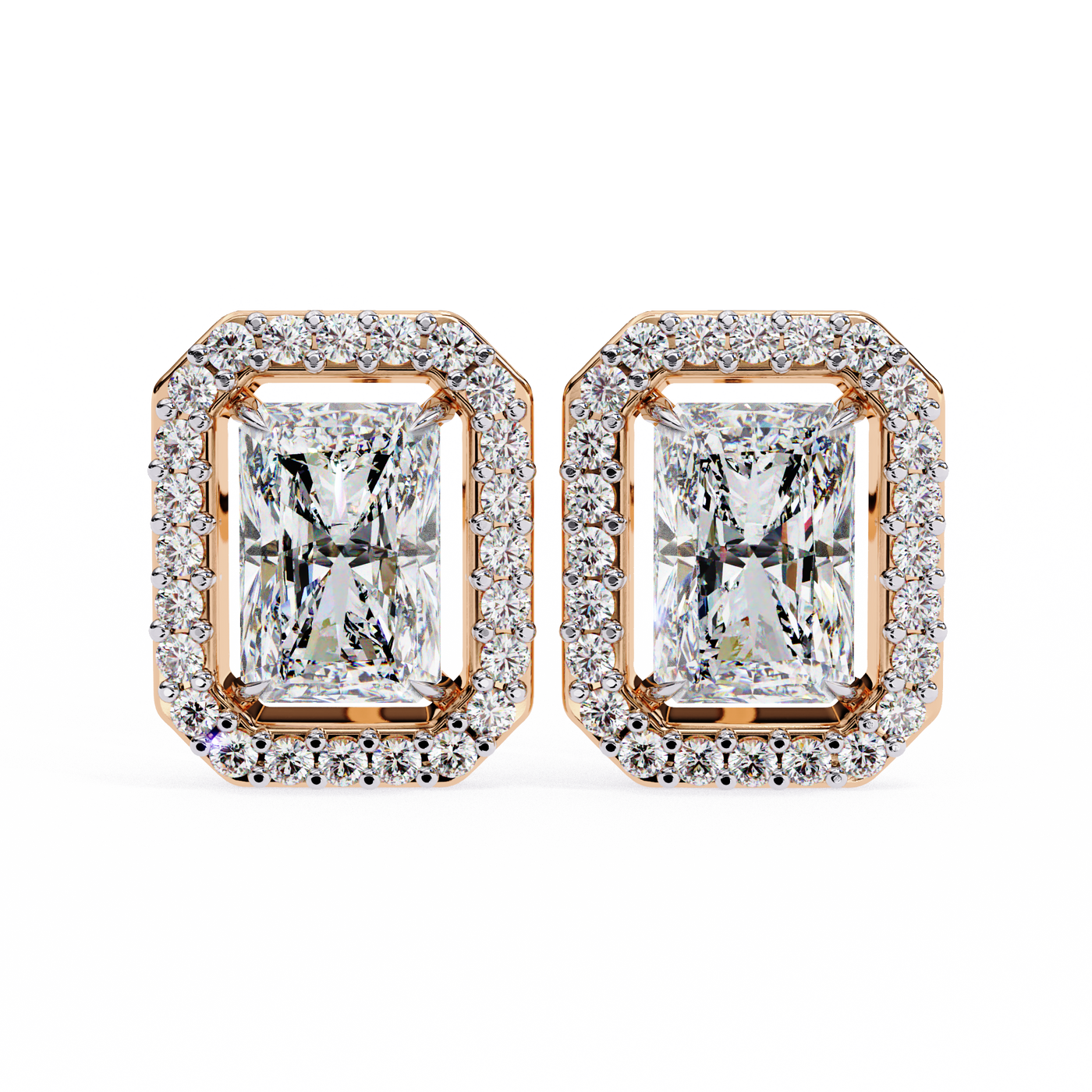 1.9 Carat Radiant Shape EF Color VS Clarity Double Halo Lab Diamond Studs - 14KT Gold / Yellow Gold