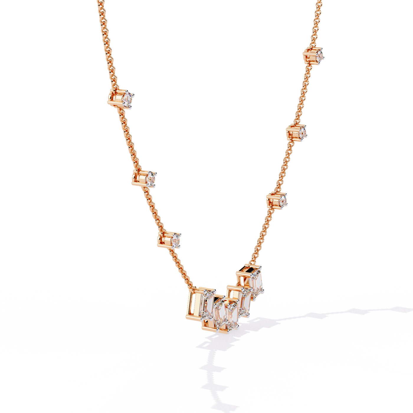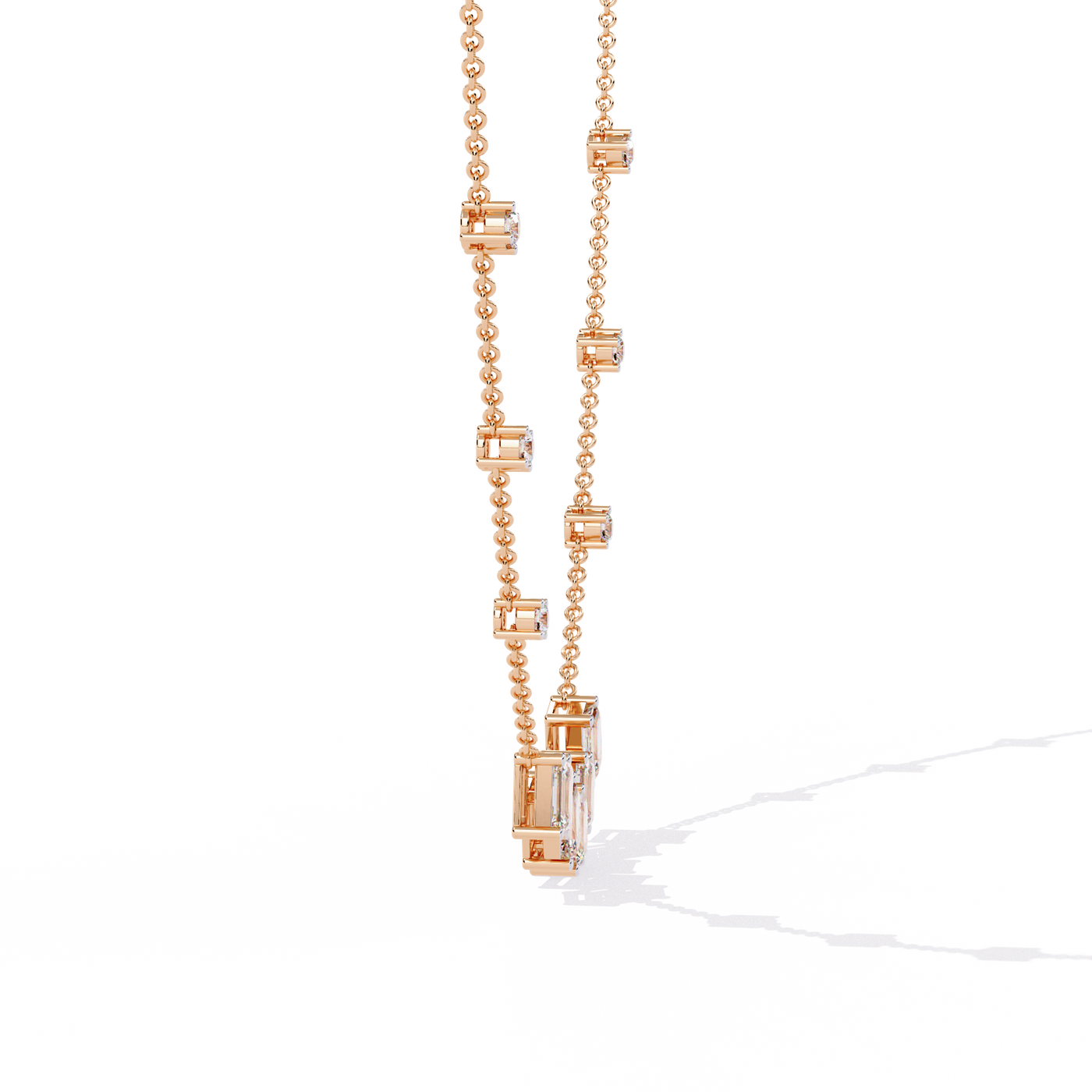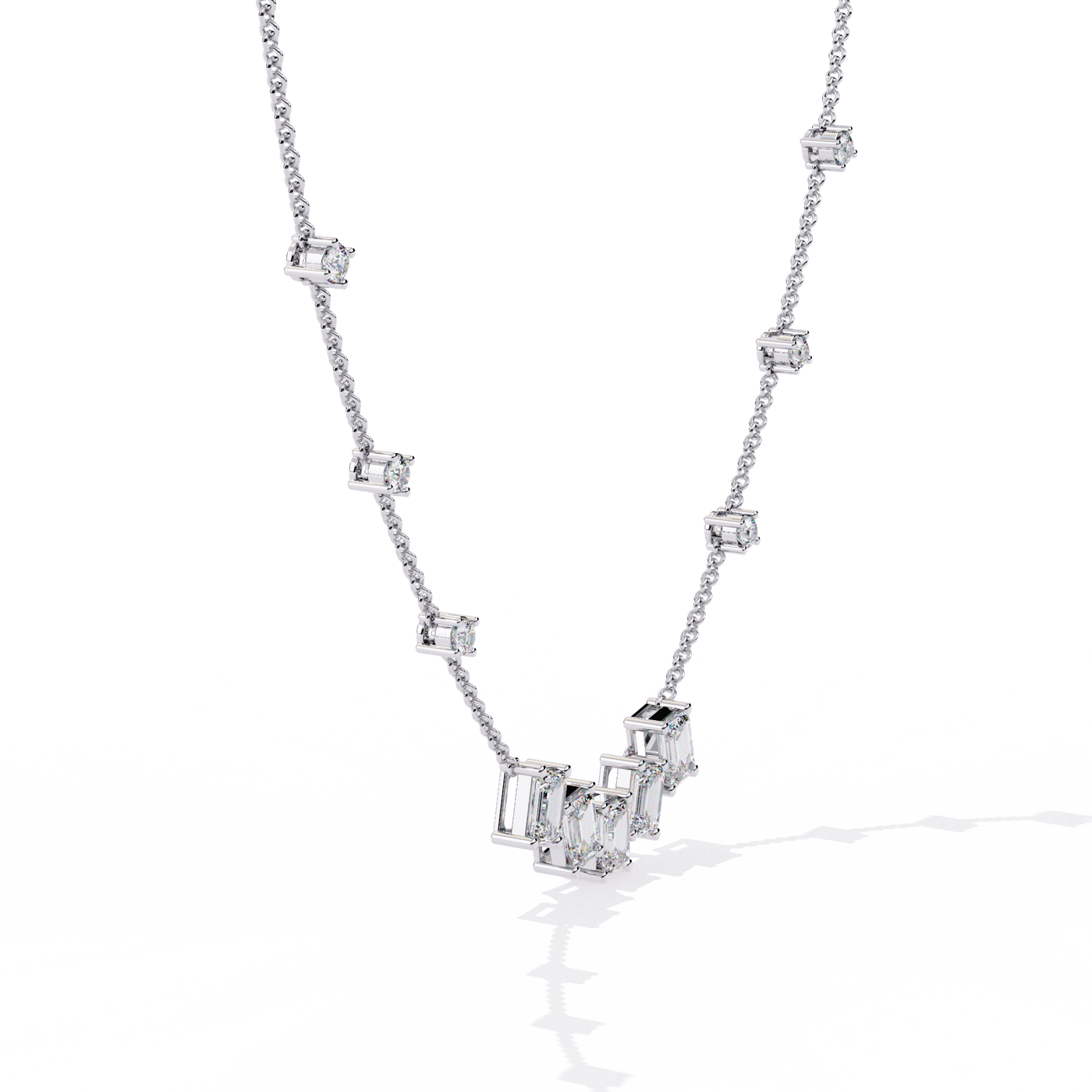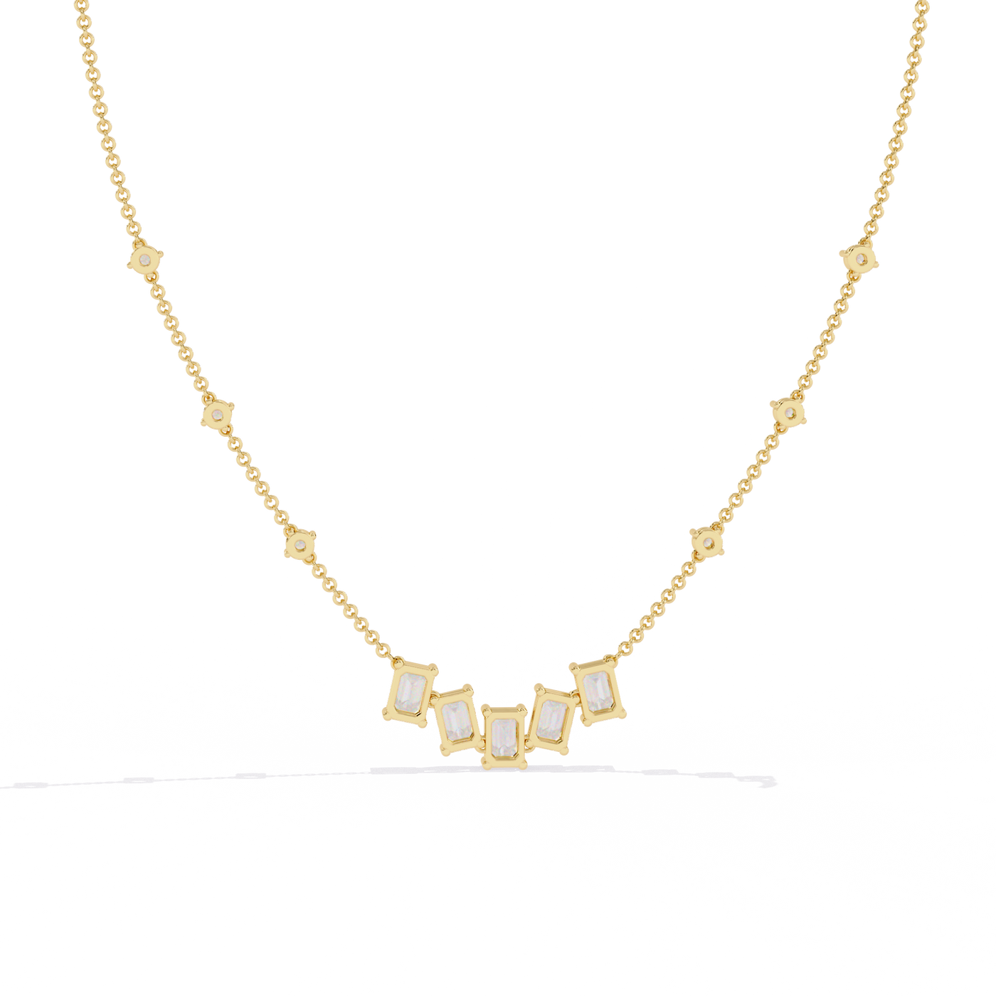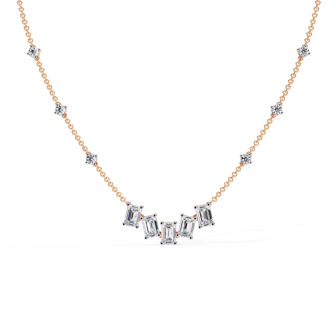 Solitairekart 3.28ct Emerald Cascade Lab Grown Diamond Necklace - 14KT Gold / 16 Inch / Yellow Gold